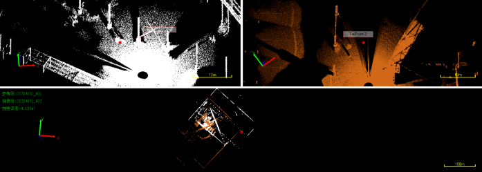 ①拼接操作在中海達專業(yè)數(shù)據(jù)處理軟件中打開外業(yè)采集的點云數(shù)據(jù),將掃描場景中的特征同名點進行拼接。拼接過程中,相鄰兩站拼接,僅需選取同一對同名點就可完成拼接工作。由于中海達專業(yè)數(shù)據(jù)處理軟件采用ICP精細拼接算法,可自動完成拼接優(yōu)化,因此可以快速處理點云去噪、分類、剔除無效點,大幅度減少了手工拼接的誤差,使得數(shù)據(jù)處理效率大大提高。