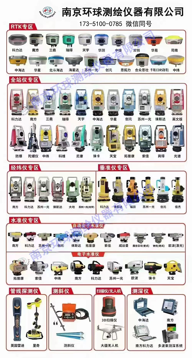 南京環(huán)球測繪儀器有限公司是目前國內(nèi)江蘇省測繪界服務(wù)規(guī)模齊全、專業(yè)技術(shù)實(shí)力雄厚的測繪儀器公司之一。公司匯聚多名測繪業(yè)內(nèi)專業(yè)人士,只為更好地為客戶提供測量系統(tǒng)方案、設(shè)備維修、測量專業(yè)技術(shù)咨詢等服務(wù)、作為國內(nèi)測繪領(lǐng)域前端企業(yè),本司快速吸收新技術(shù),銷售進(jìn)口/國產(chǎn)三維激光掃描儀、無人機(jī)系統(tǒng)、GPS(GNSS)定位系統(tǒng)、GIS(手持GPS)衛(wèi)星接收機(jī)等技術(shù)產(chǎn)品;同時銷售進(jìn)口和國產(chǎn)全站儀、經(jīng)緯儀、水準(zhǔn)儀、陀螺儀、測深儀、激光測距儀、激光垂準(zhǔn)儀、激光標(biāo)線儀等常規(guī)測量儀器以及樓板厚度測定儀、裂縫寬(深)度測試儀、管線探測儀等無損檢測儀器;并對國內(nèi)、外各專業(yè)公司的數(shù)字成圖軟件、道路放樣軟件、平差軟件、房產(chǎn)軟件等專業(yè)軟件實(shí)施培訓(xùn)及銷售服務(wù),涉及:大壩監(jiān)測系統(tǒng)、工程施工放樣測量、電網(wǎng)送變電線路智能檢測測量系統(tǒng)、塔吊測量系統(tǒng)、危險(xiǎn)品儲罐失穩(wěn)解決系統(tǒng)、危險(xiǎn)品運(yùn)輸管理系統(tǒng)、三維影點(diǎn)方量攝影測量系統(tǒng)等解決方案。歷時三十余年,本司全面匯集測繪領(lǐng)域從外業(yè)到內(nèi)業(yè)、從硬件到軟件、從時間到空間數(shù)據(jù)處理等多種產(chǎn)品。