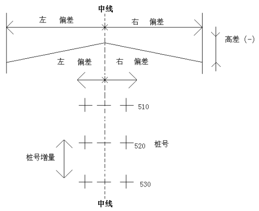 【偏差】 左:表示左邊樁點與中線的平距;右: 為右邊樁與中線的平距。
